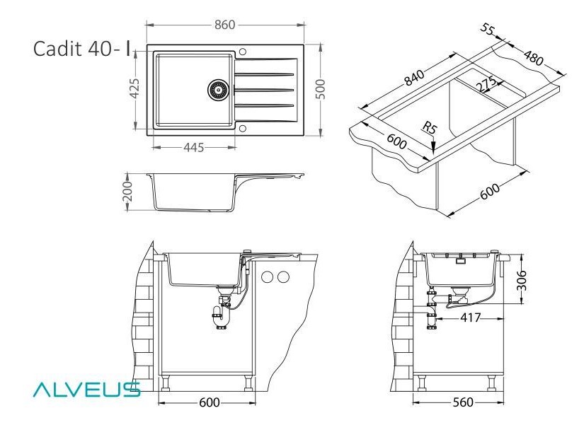 Кухонная мойка Alveus GRANITAL CADIT 40 ARCTIC