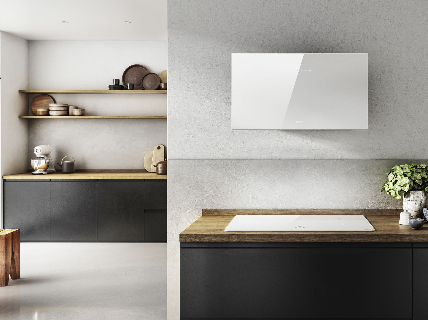 Современная конструкция, выполненная заподлицо, делает эту вытяжку идеальной для монтажа между подвесными шкафами, не исключая самостоятельной установки, что обеспечивает гармоничную гибкость как в отсасывающем, так и в фильтрующем исполнениях.