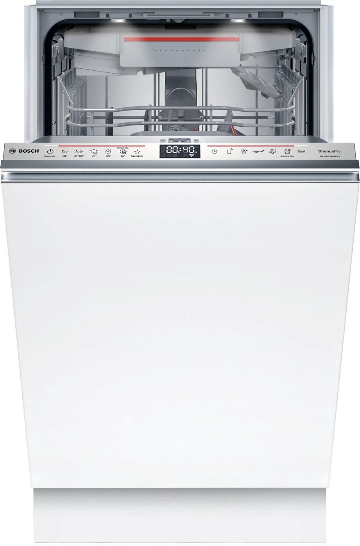 Модель Bosch SPV6EMX76Q — оптимальный вариант для малогабаритной кухни. Ширина прибора — всего 44,8 см, поэтому он займет небольшое пространство в помещении. Для размещения посуды используются три корзины, высоту верхнего короба можно менять.