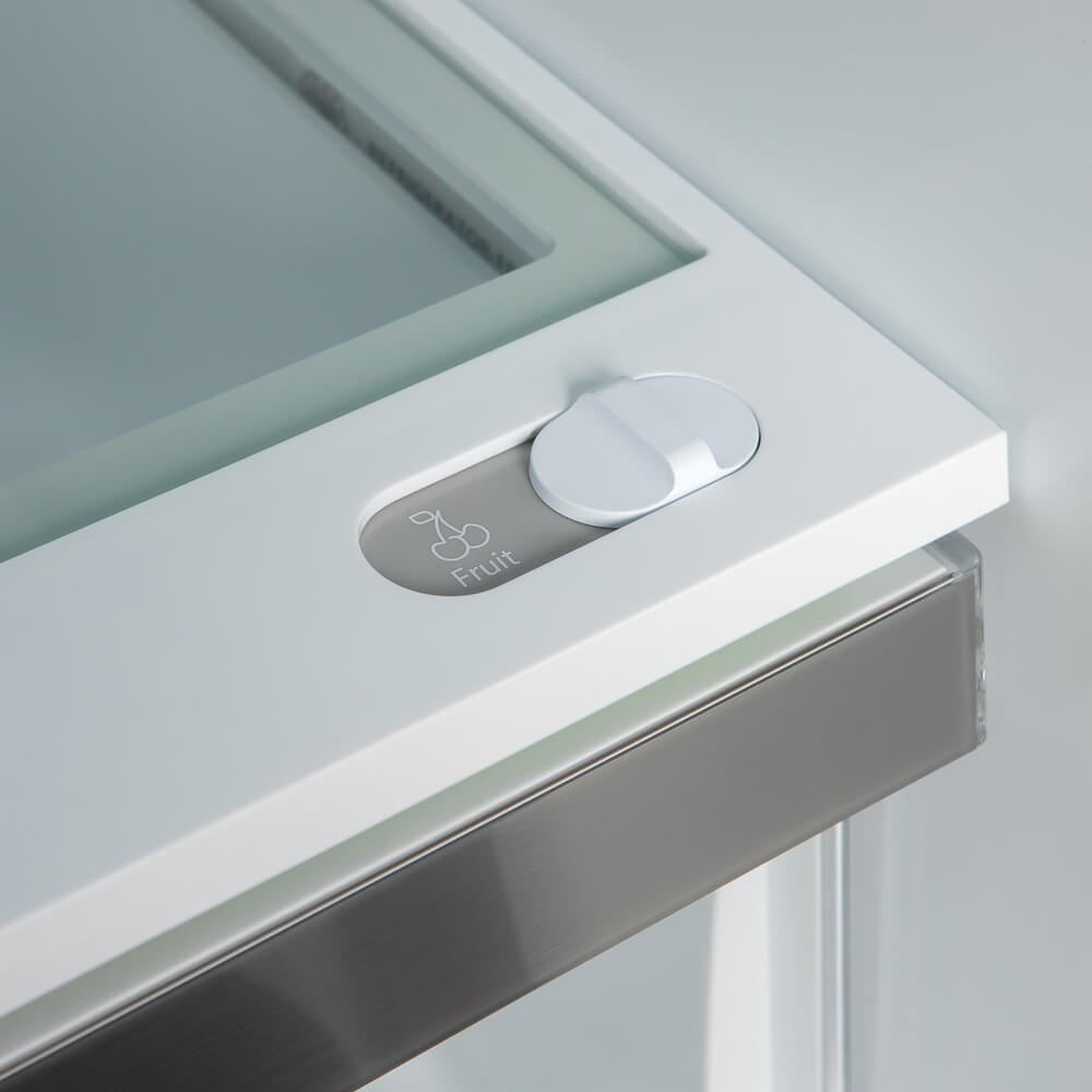 Ящик Fresh Choice по всей ширине: Это позволяет создать идеальные условия для гастрономических продуктов, овощей, фруктов и напитков.