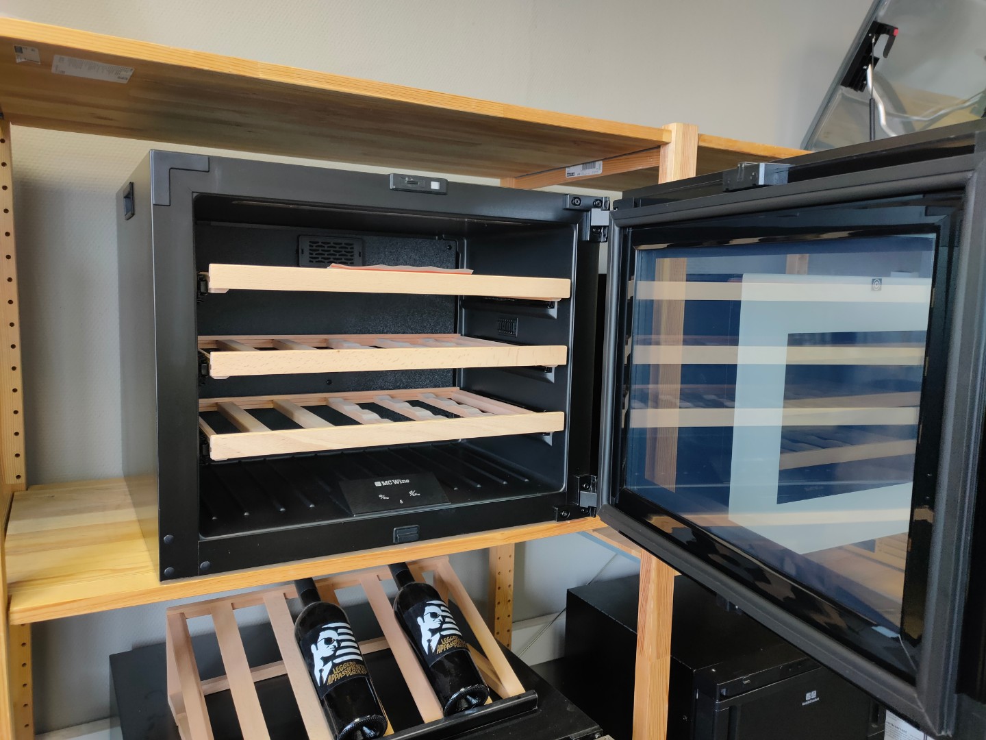 - Реверсивная дверь, которая позволяет устанавливать два винных шкафа рядом;